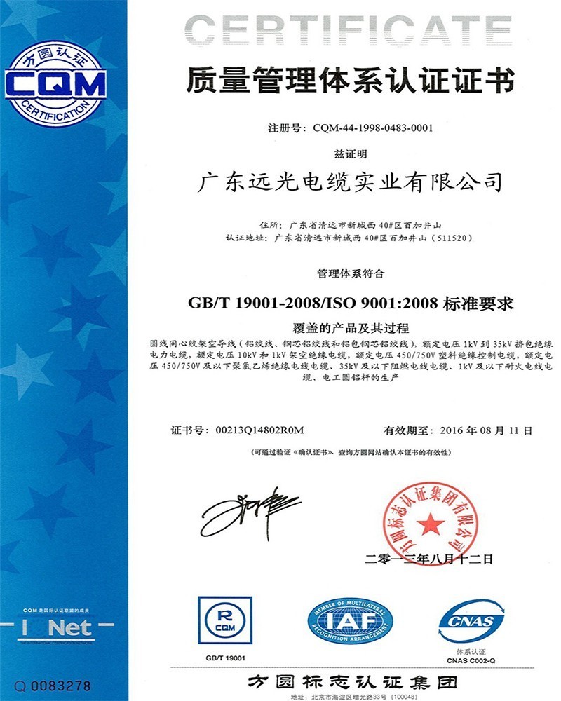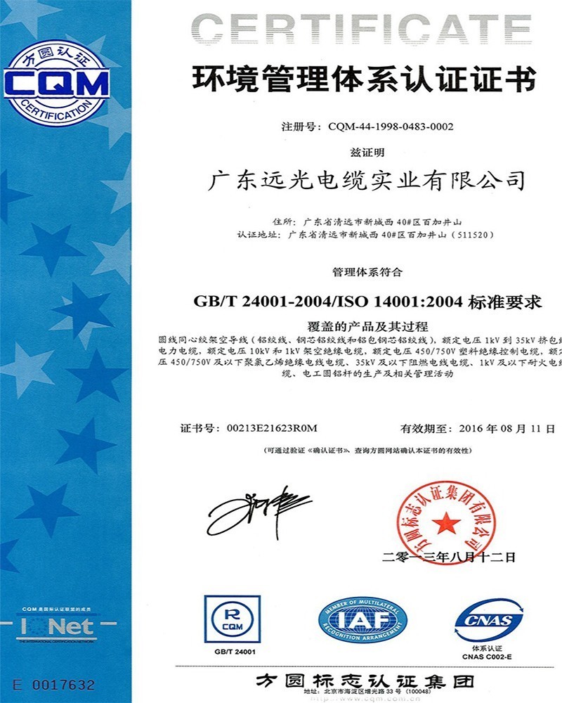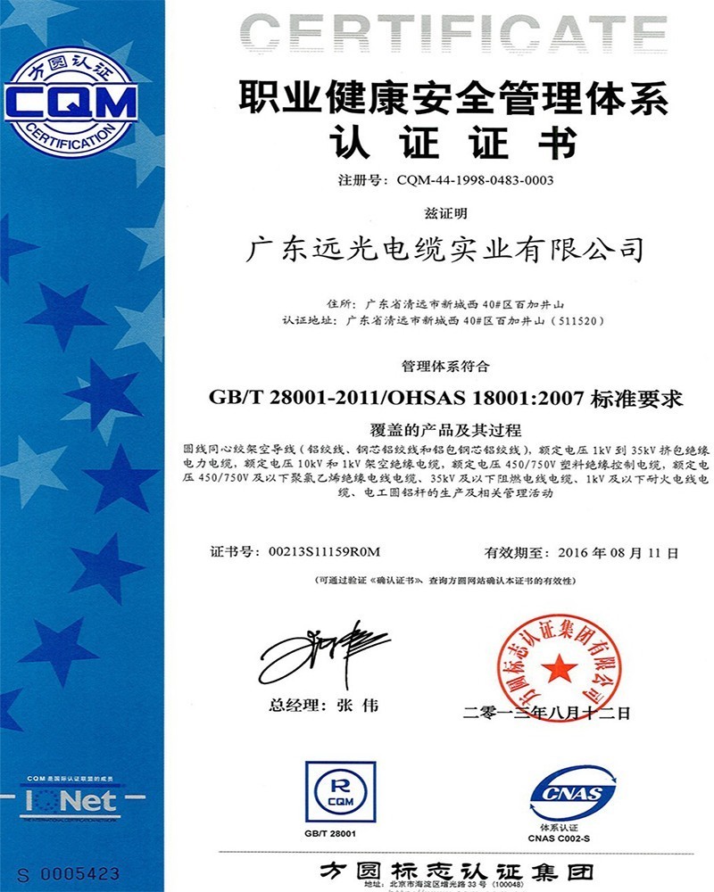 6月16日,由方圆标志认证集团公司的4位审核专家组成的审核组对远光电缆公司进行了质量、环境、职业健康安全管理体系进行了年度监督审核。