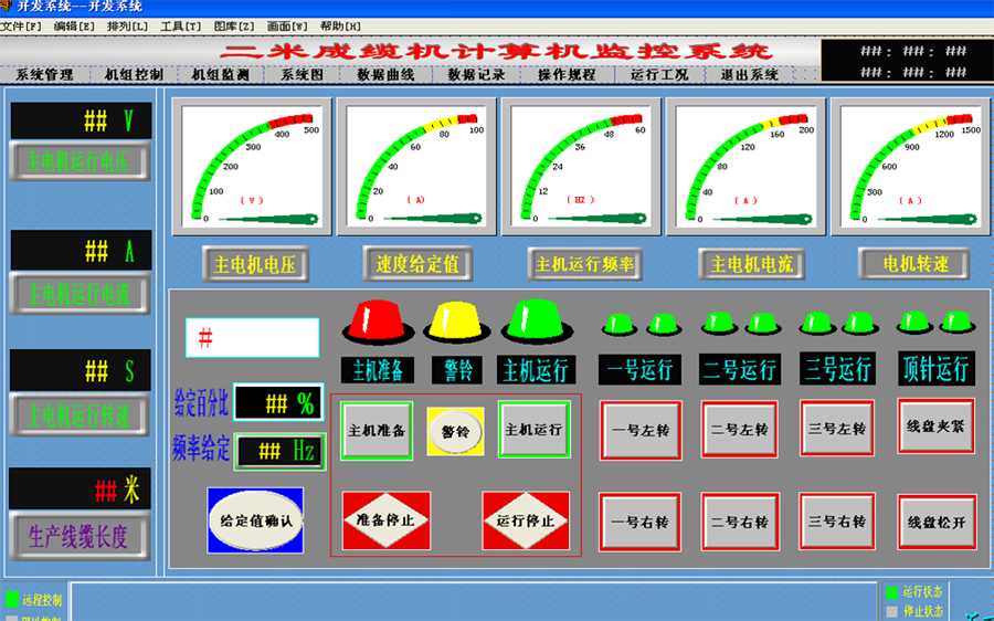 该项目是在不影响设备运行状况,不影响产品所需工艺的情况下,将三台成缆机上耗能高、效率低的电磁调速主电机改造成(专用YP2系列)变频电机加变频器控制方式。同时采用法国丹佛斯变频器、德国西门子PLC、西门子触摸屏控实现高效,高可靠性,动态监测运行电流,动态用电状况,故障监测等全新功能。能把设备各运行情况直观的显示出来,让开机员工一目了然。