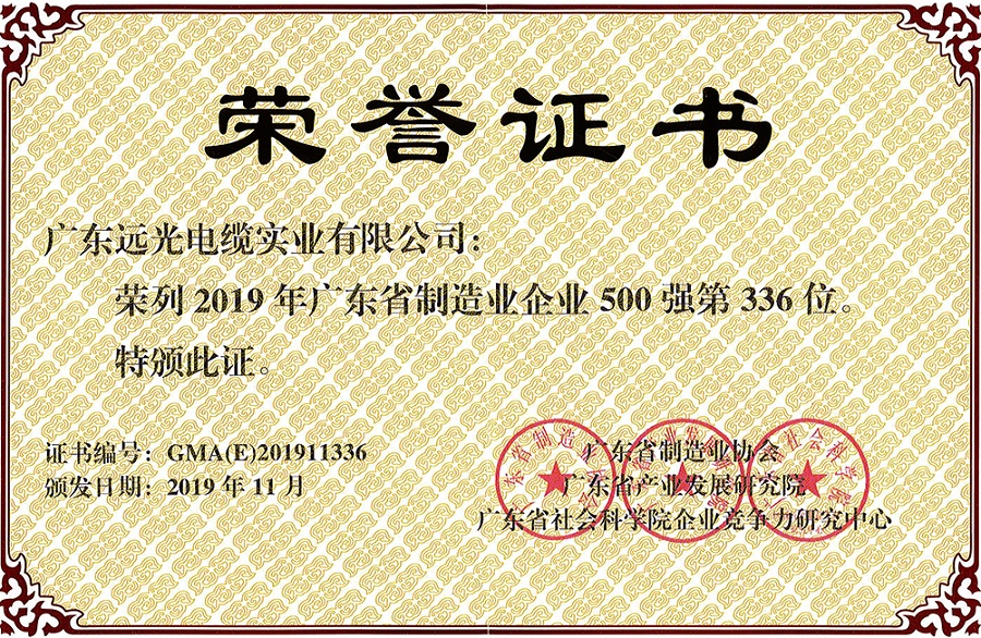 会上,发布了《2019年广东制造业500强企业研究报告》,报告显示,清远共有12家企业入选广东制造业500强企业,成为非珠三角地区制造业500强企业数量最多、且增长数最多的城市。广东远光电缆实业有限公司作为清远本土优秀民营企业,光荣在列。
