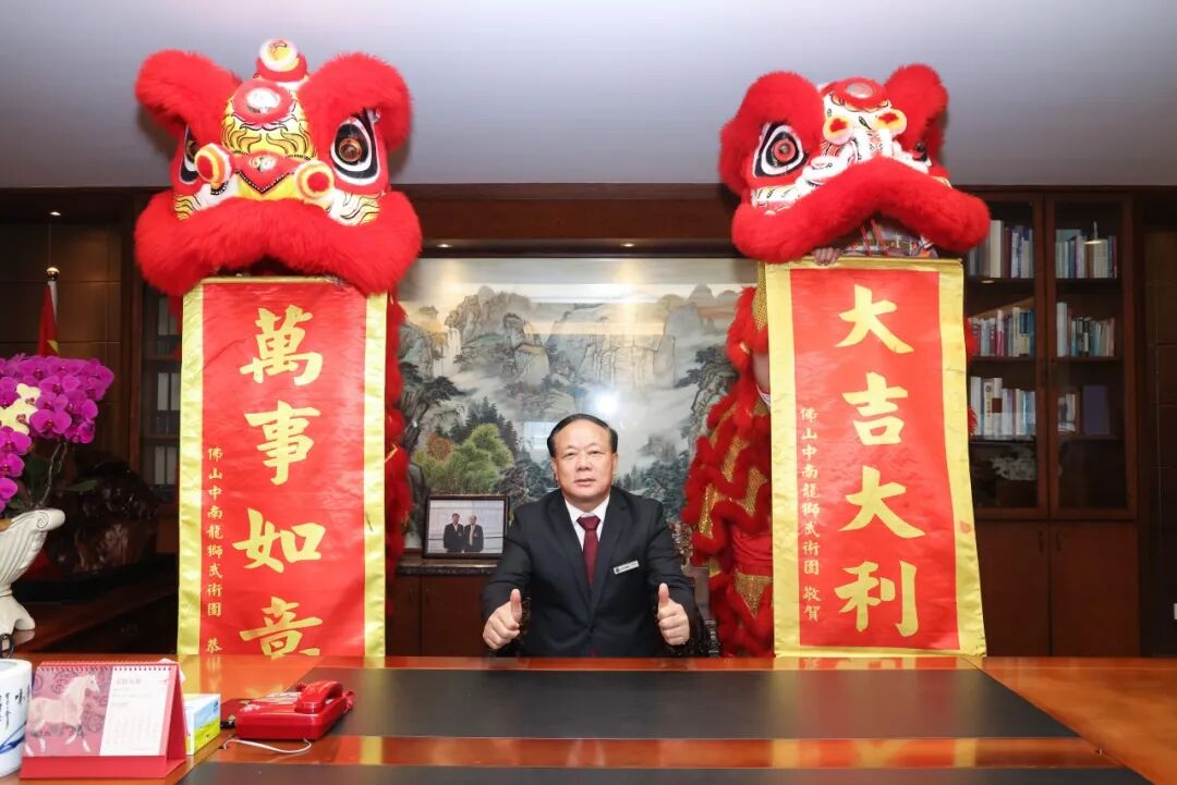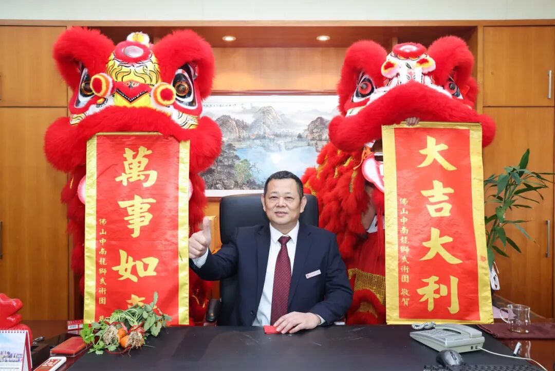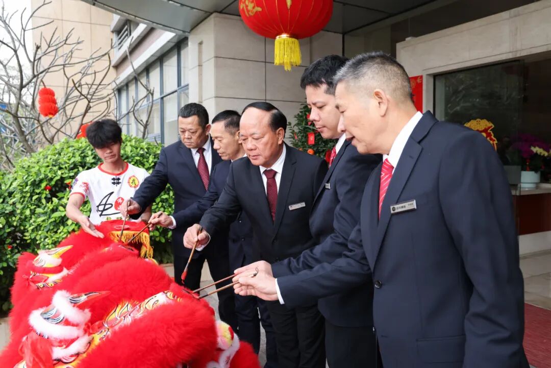 吉辰至,锣鼓震,一双雄健昂扬的醒狮应声跃动。金眼灼灼,赤鬃飞扬,随着铿锵鼓韵腾挪起伏,展现生气勃发之姿。点睛环节,蔡仲光董事长率董事会成员、集团总裁执朱砂落笔,霎时醒狮神采迸发,象征远光集团在新的一年如醒狮奋发,目光如炬,步履坚定,勇拓新局。