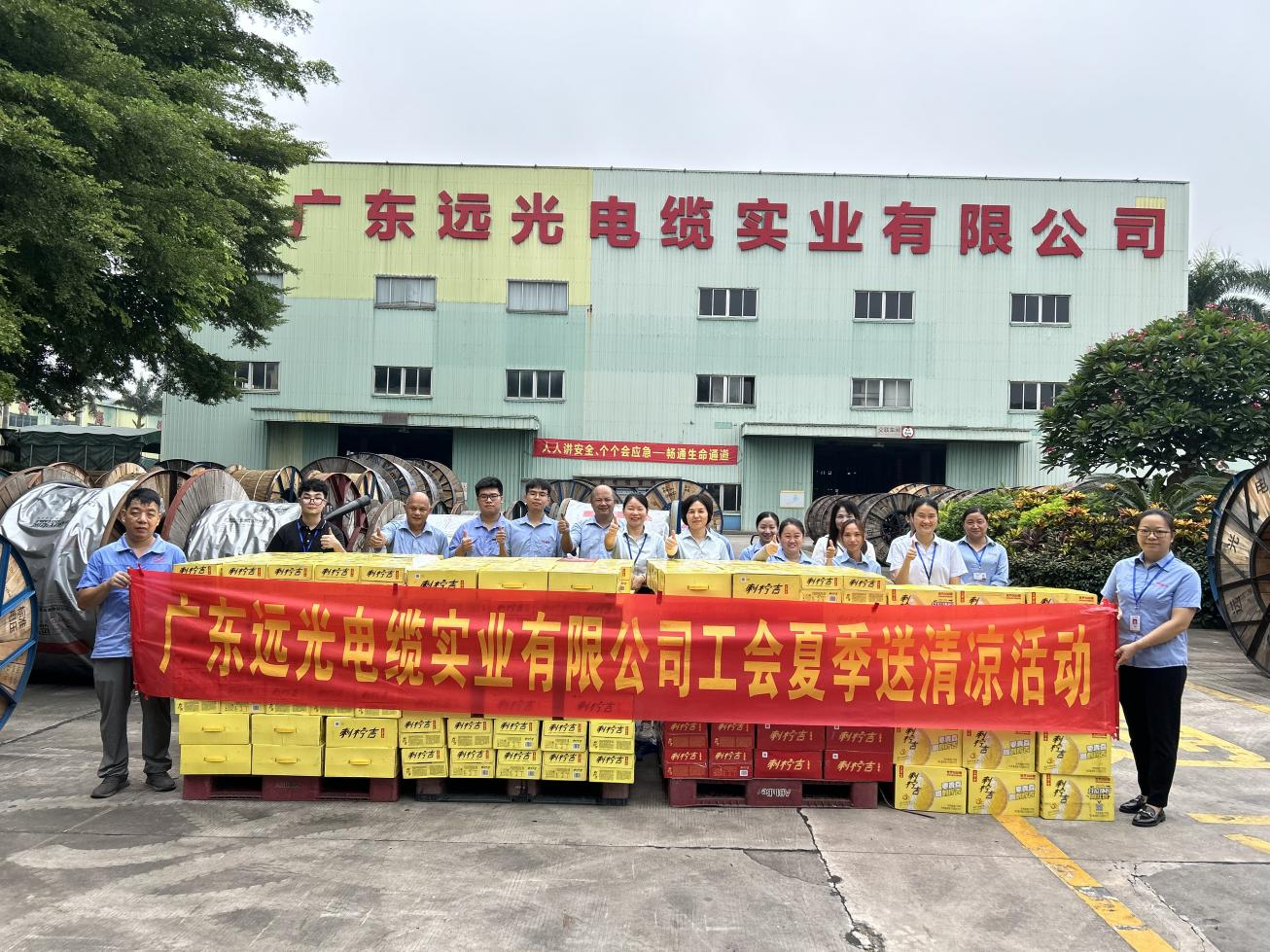 炎炎夏日送清凉,浓浓关怀沁人心。连续的高温天气给坚守在一线的员工带来严峻的“烤”验。为深切关怀高温下坚守岗位的广大职工,确保他们的劳动安全和身心健康,2024年6月至8月,远光电缆工会开展“夏日送清凉,关怀沁人心”系列活动,为一线员工送去丝丝清凉。此次活动为公司全体员工发放清凉饮料共1500多箱,费用达6万多元。