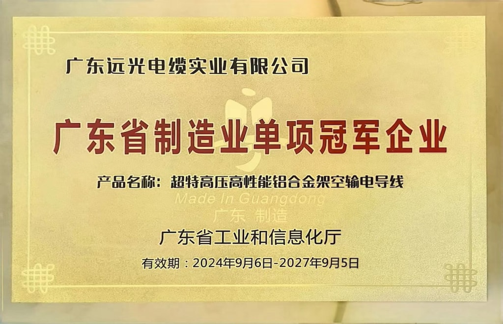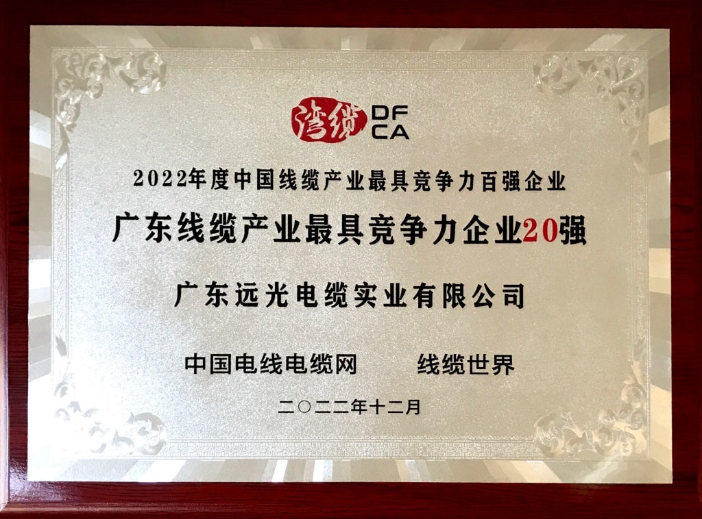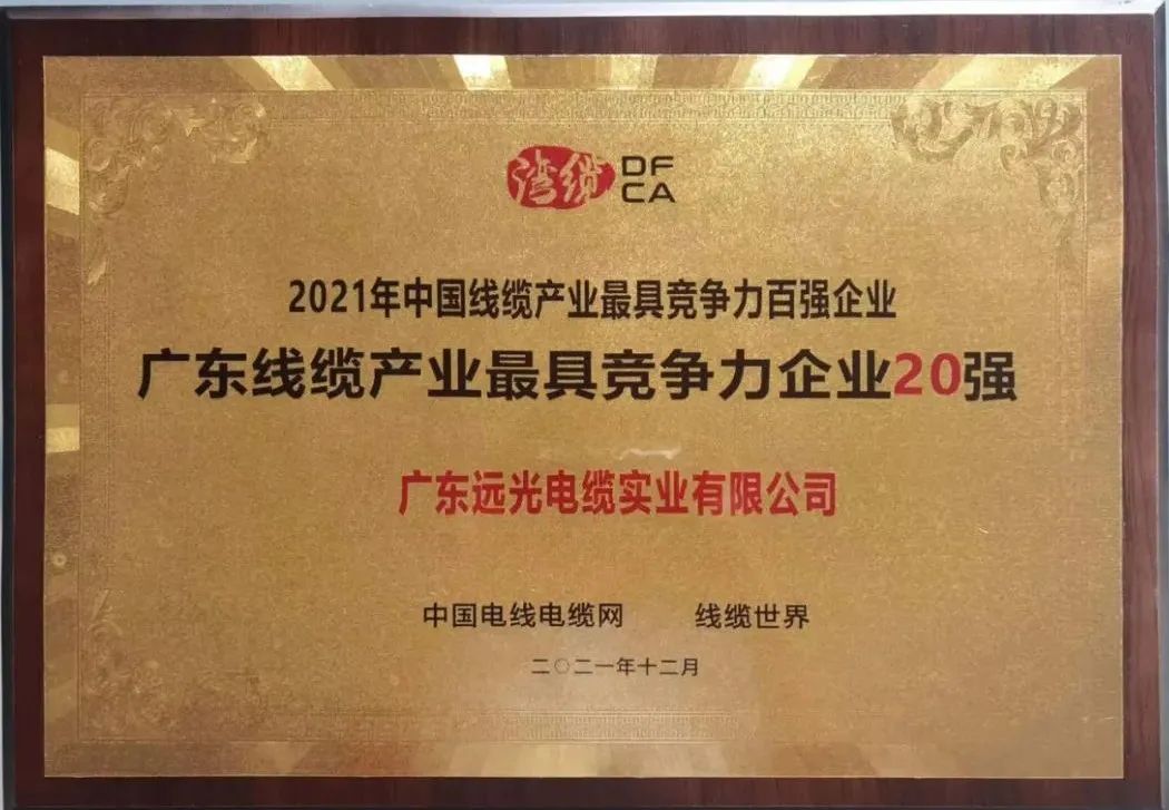 广东线缆产业最具竞争力企业20强称号