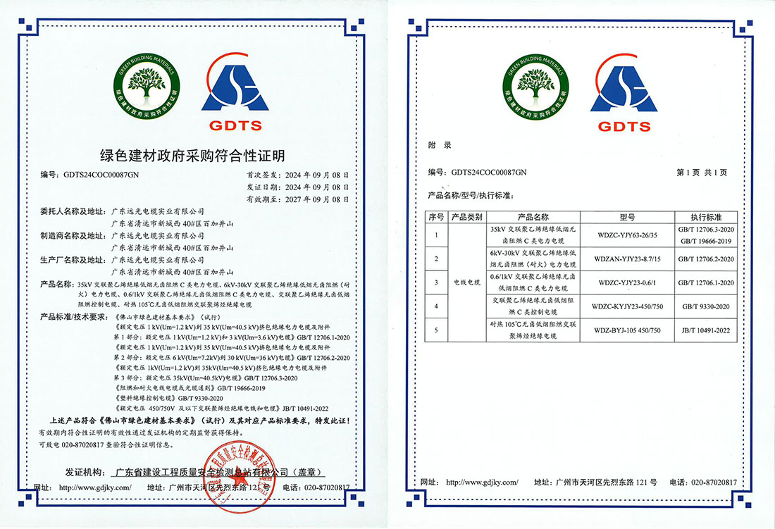 GDTS24COC00087GN 政府采购符合性证明证书-广东远光电缆实业有限公司