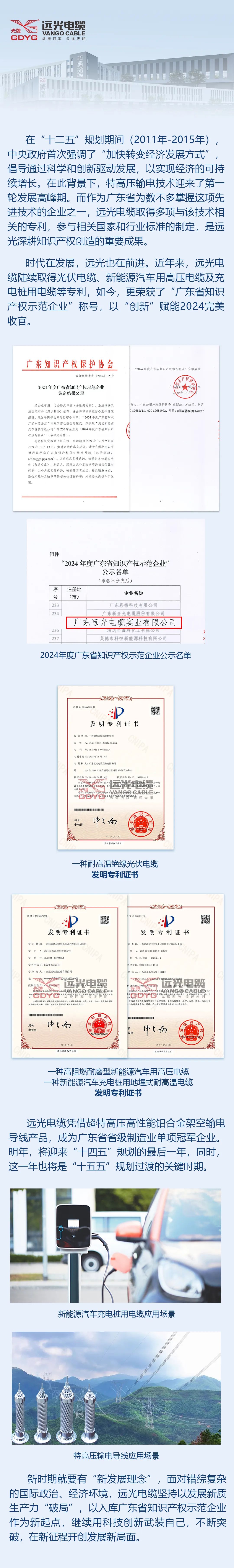 2024完美收官!远光电缆荣获广东省知识产权示范企业