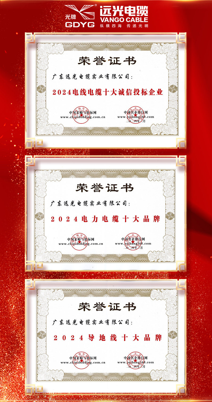 喜讯 | 远光电缆获评2024“电线电缆十大诚信投标企业、电力电缆十大品牌、导地线十大品牌”称号