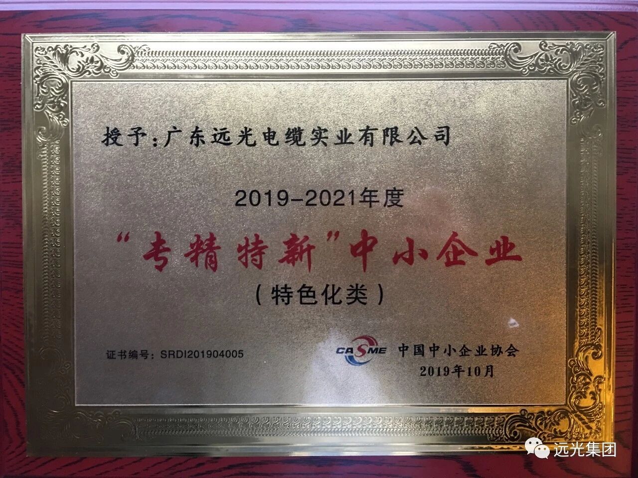 中国中小企业协会在全国范围内优选出了20家“专精特新”特色化企业,并在大会上正式发布了2019-2021年度“专精特新”中小企业的获奖名单,远光电缆光荣在列。