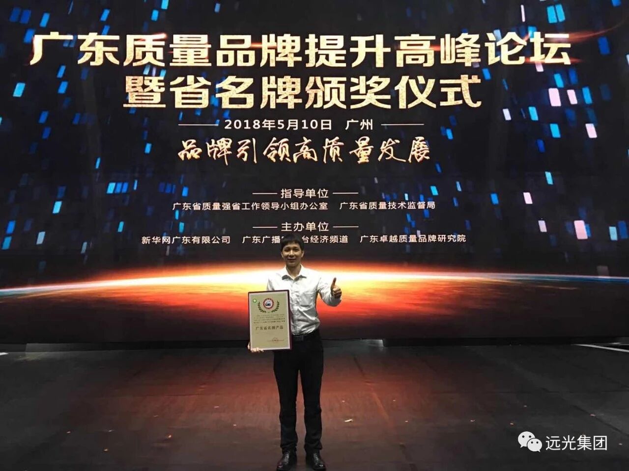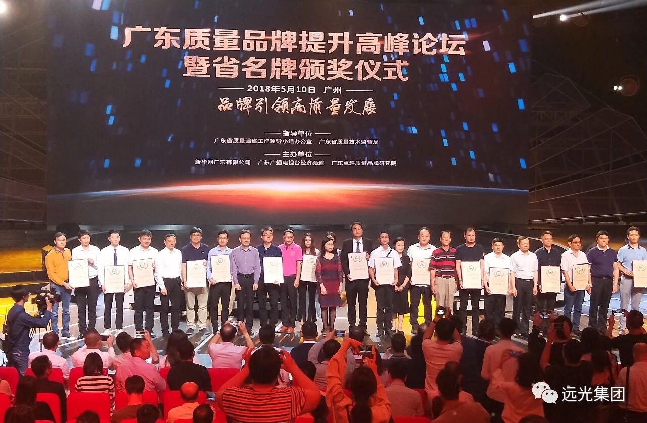 2018年5月11日,广东质量品牌提升高峰论坛暨省名牌颁奖仪式在广州隆重举行,省名推委成员单位领导、各地市质监局分管领导及获得“广东省名牌产品”称号的部分企业代表一同出席了会议。我司总经理助理钟伟健先生代表全体远光人出席授牌仪式。