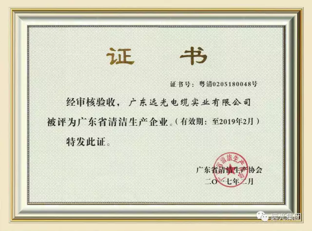 公司自2005年初次获得该荣誉,至今已有十一年了,一直以来远光电缆高度重视企业清洁生产工作,各部门积极开展清洁生产工作改革,不断完善清洁生产体系,努力提高企业绿色生产水平。