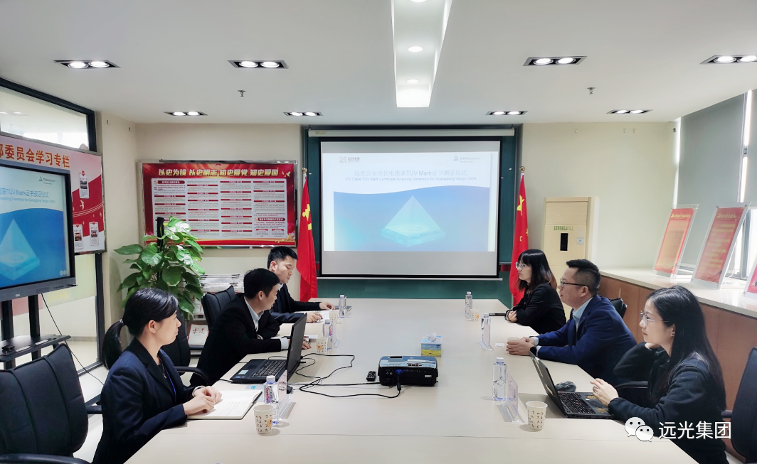 1月25日,国际独立第三方检测、检验和认证机构德国莱茵TÜV(以下简称“TÜV莱茵”)向广东远光电缆实业有限公司(以下简称“远光电缆”)颁发了TÜV莱茵认证证书。TÜV莱茵大中华区太阳能与商业产品服务部门经理武艺、资深项目经理张丽颖、销售副经理卢惠芬,远光电缆技术总监刘冠,高级工程师、技术经理许莉莉,董事长秘书赖建铭等出席了颁证仪式。