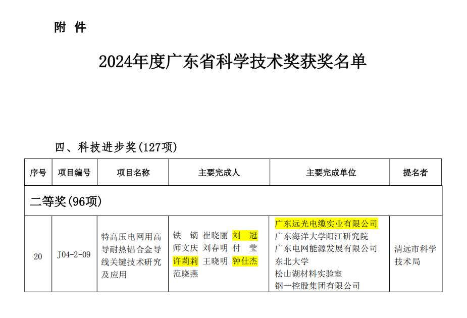 日前,2024年度广东省科学技术奖拟奖公示名单出炉,清城辖区企业广东远光电缆实业有限公司成功上榜,喜获广东省科学技术进步二等奖。