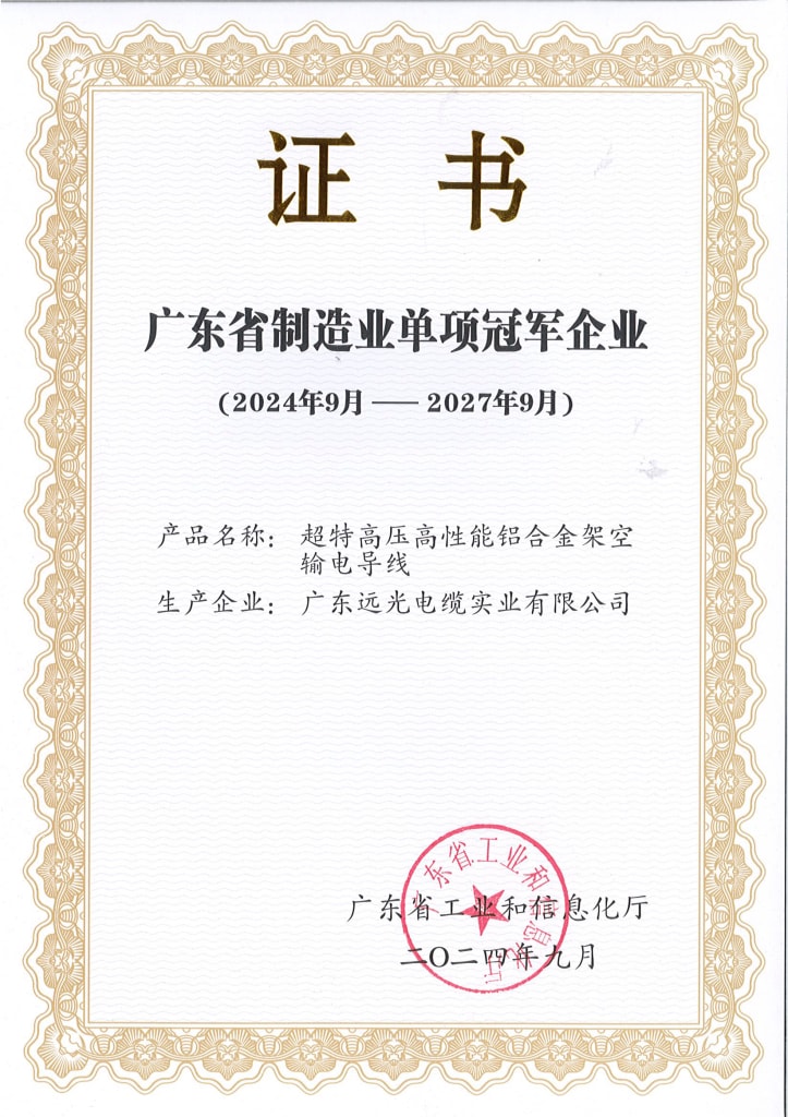 远光电缆荣列2022年制造业企业500强第313位