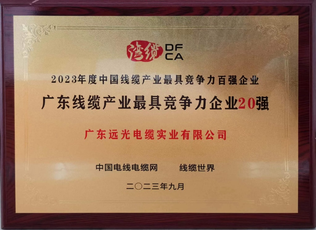 广东线缆产业最具竞争力企业20强称号