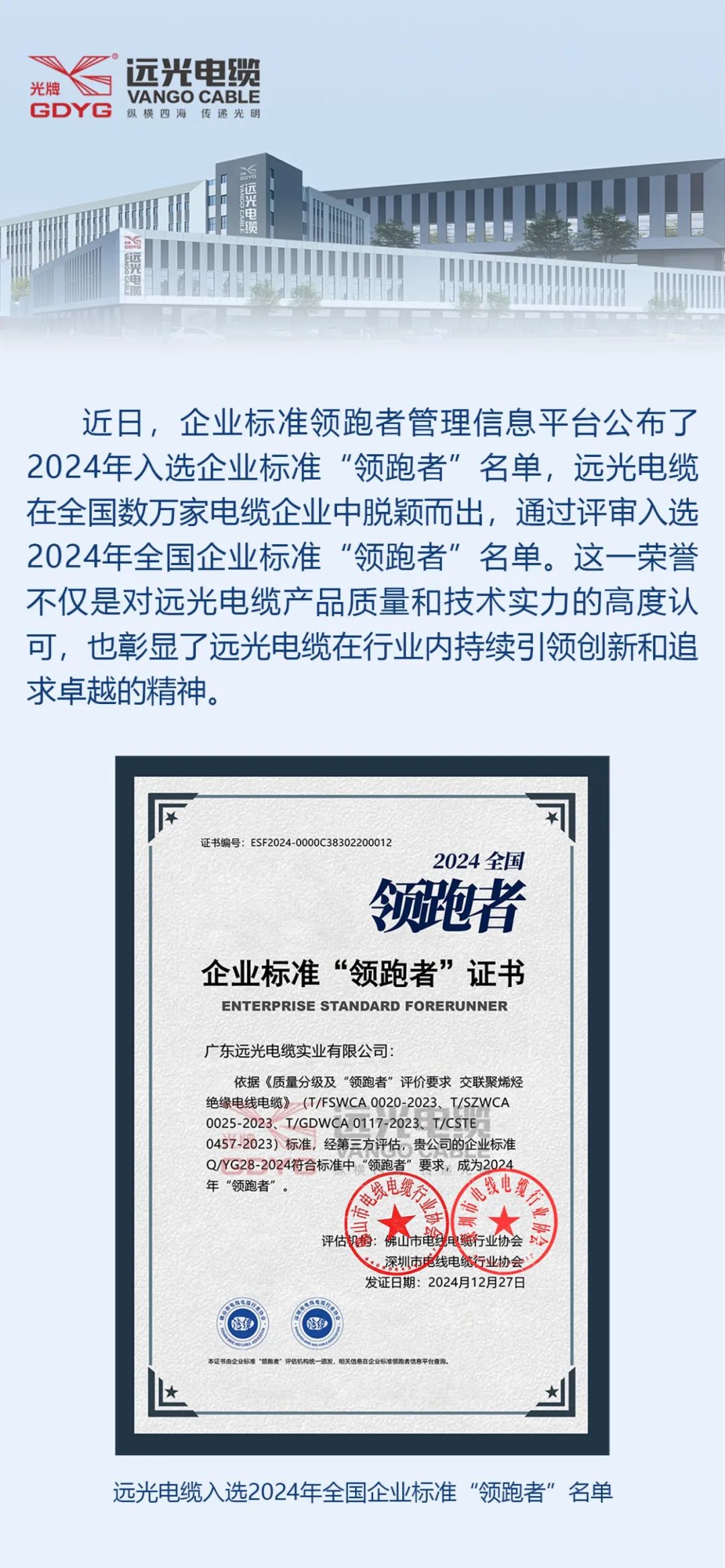 喜讯|远光电缆入选2024年企业标准“领跑者”名单