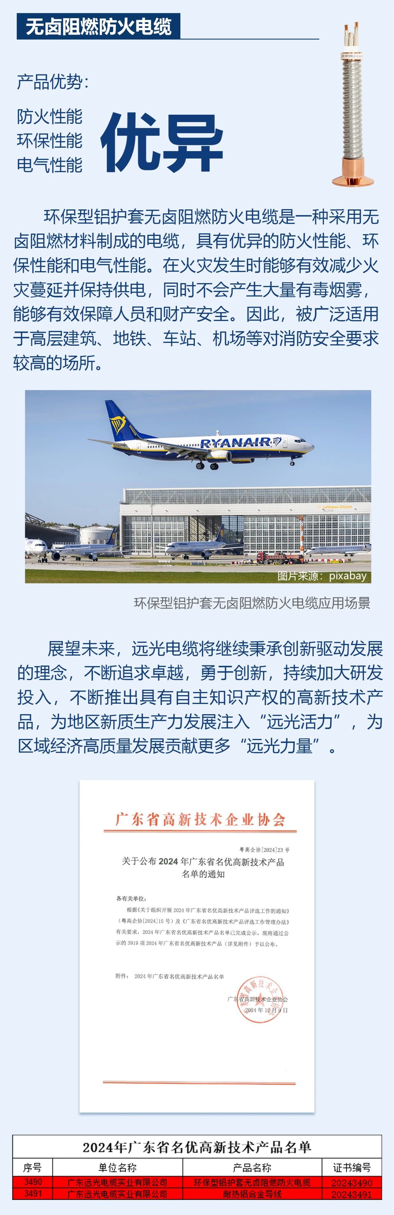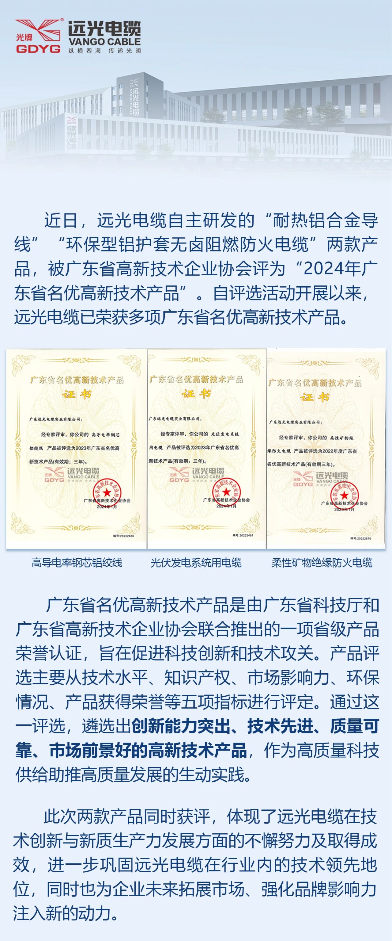远光电缆两款产品获评“广东省名优高新技术产品”
