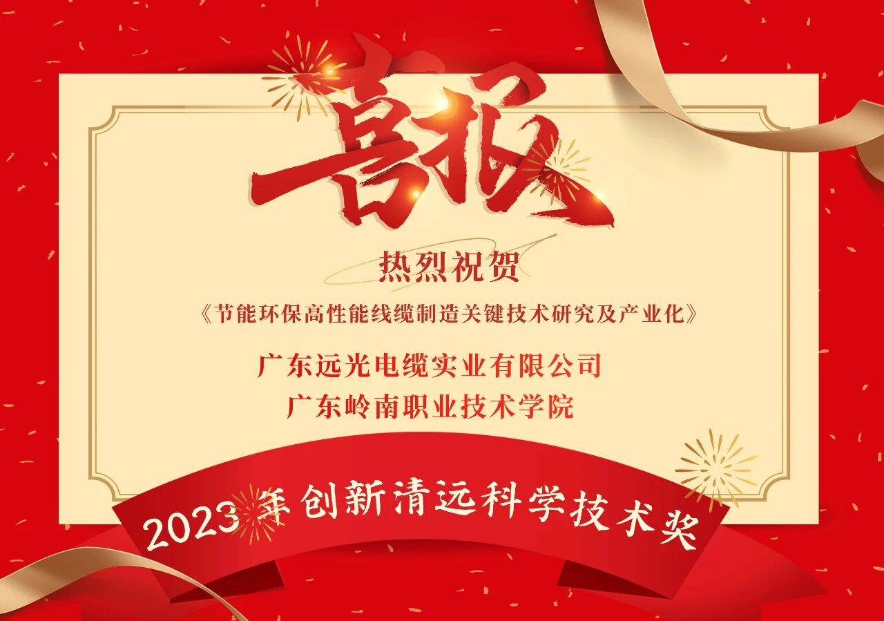 近日,“创新清远”科学技术奖评选办公室公布了“2023 年创新清远科学技术奖”获奖名单,由远光电缆主持、联合广东岭南职业技术学院共同开发的《节能环保高性能线缆制造关键技术研究及产业化》项目获得了“2023 年创新清远科学技术奖”二等奖。